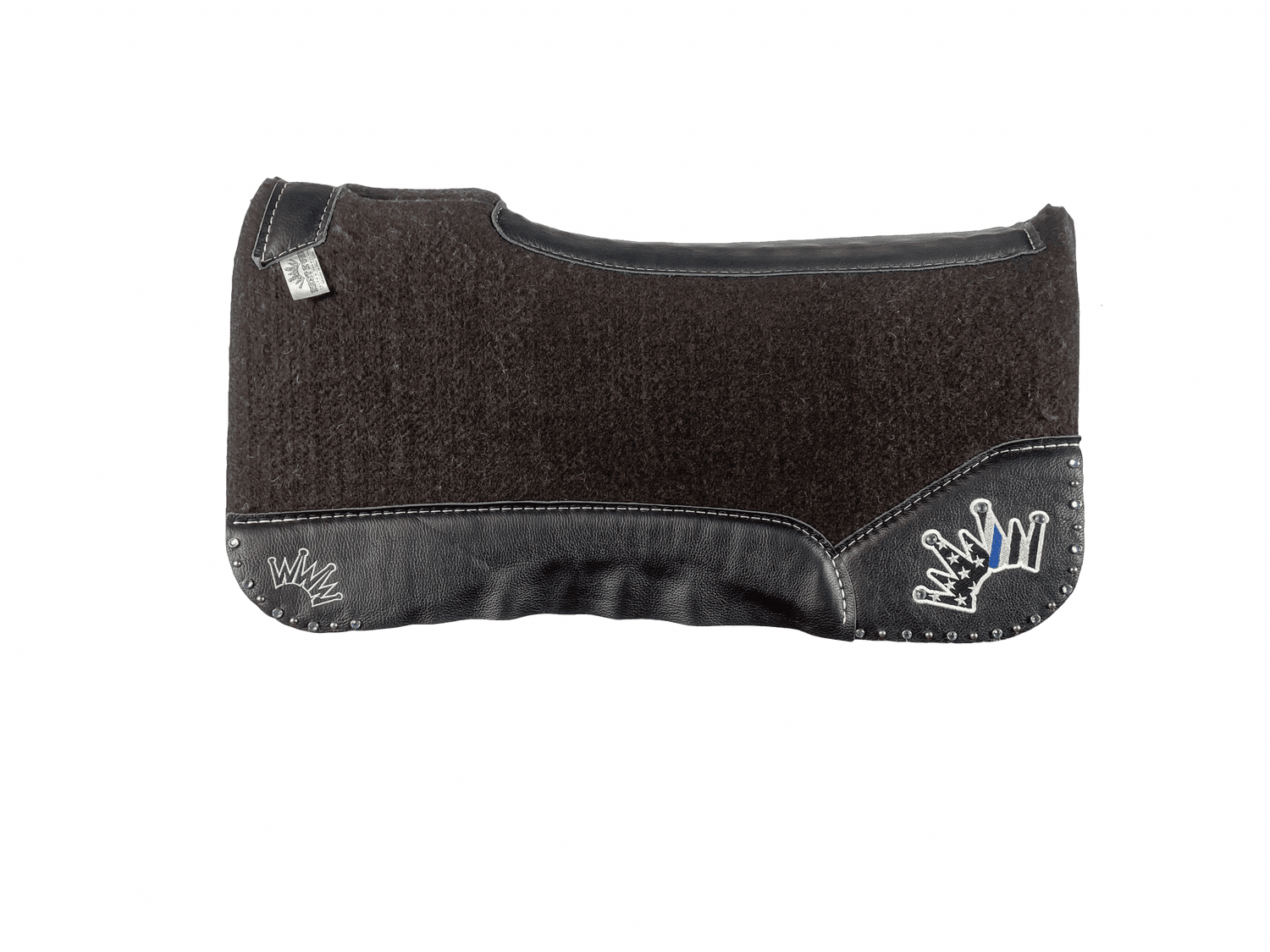Timeless black leather with a powerful statement. The OG Saddle Pad with Black Leather features Thin Blue Line crown embroidery paired with clear crystal accents and silver spots — honoring strength, service, and tradition while delivering trusted ride-ready performance.