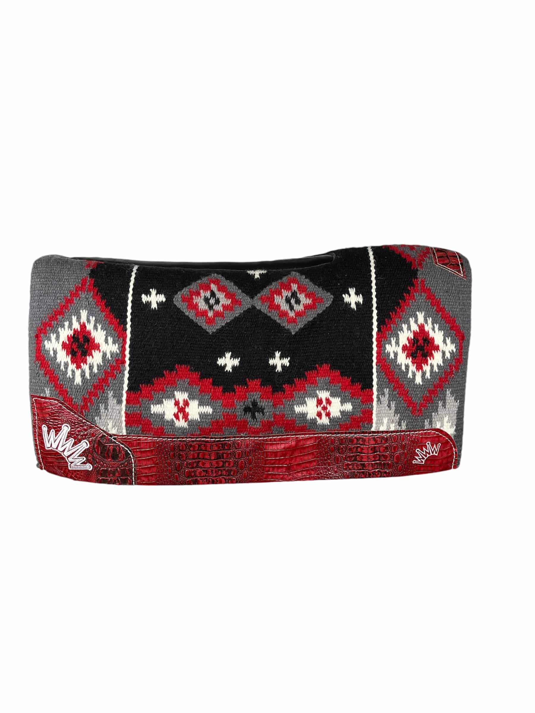 This pad comes with 34×38 Square Cut Black Red Navajo with 1″ Kush Base- Red Crocodile – Crown in White Embroidery! FREE SHIPPING!