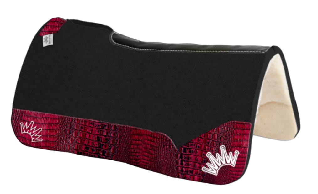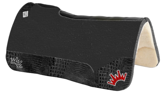 Mayfield is pictured riding our 32×32 1” Black Kush Fleece – Black Crocodile – Crown in White/Red Embroidery