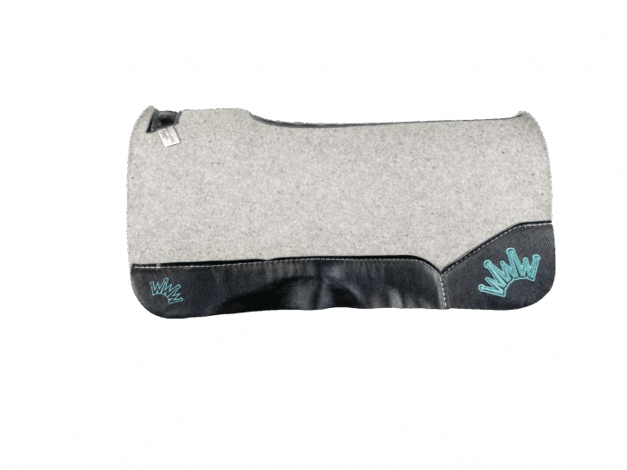 Gray Kush Saddle Pad with Black Leather – Crown in Teal Embroidery