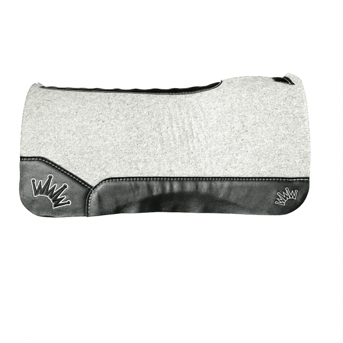 Gray Kush Saddle Pad with Black Leather – Crown in White/Black Embroidery