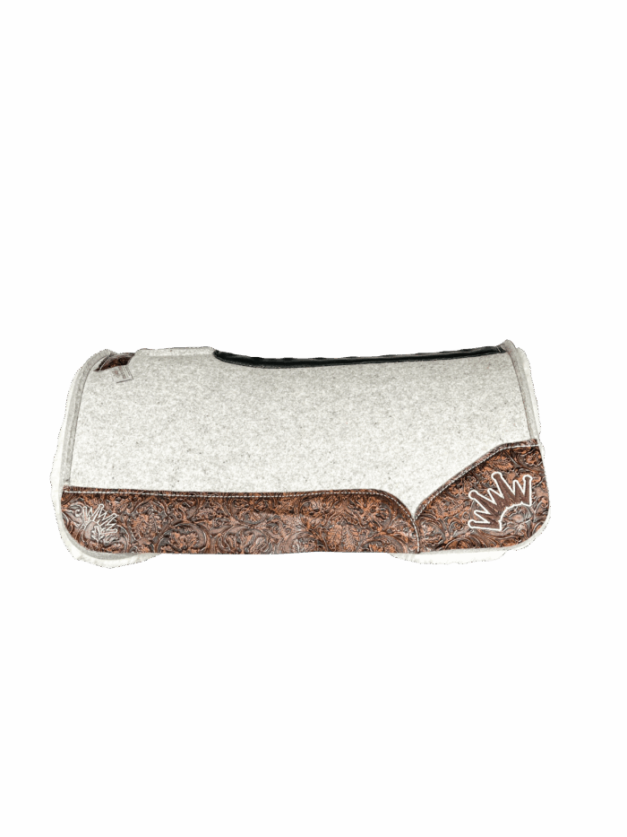 Gray Kush Fleece Saddle Pad with Indios Floral – Crown in White/Dark Brown Embroidery