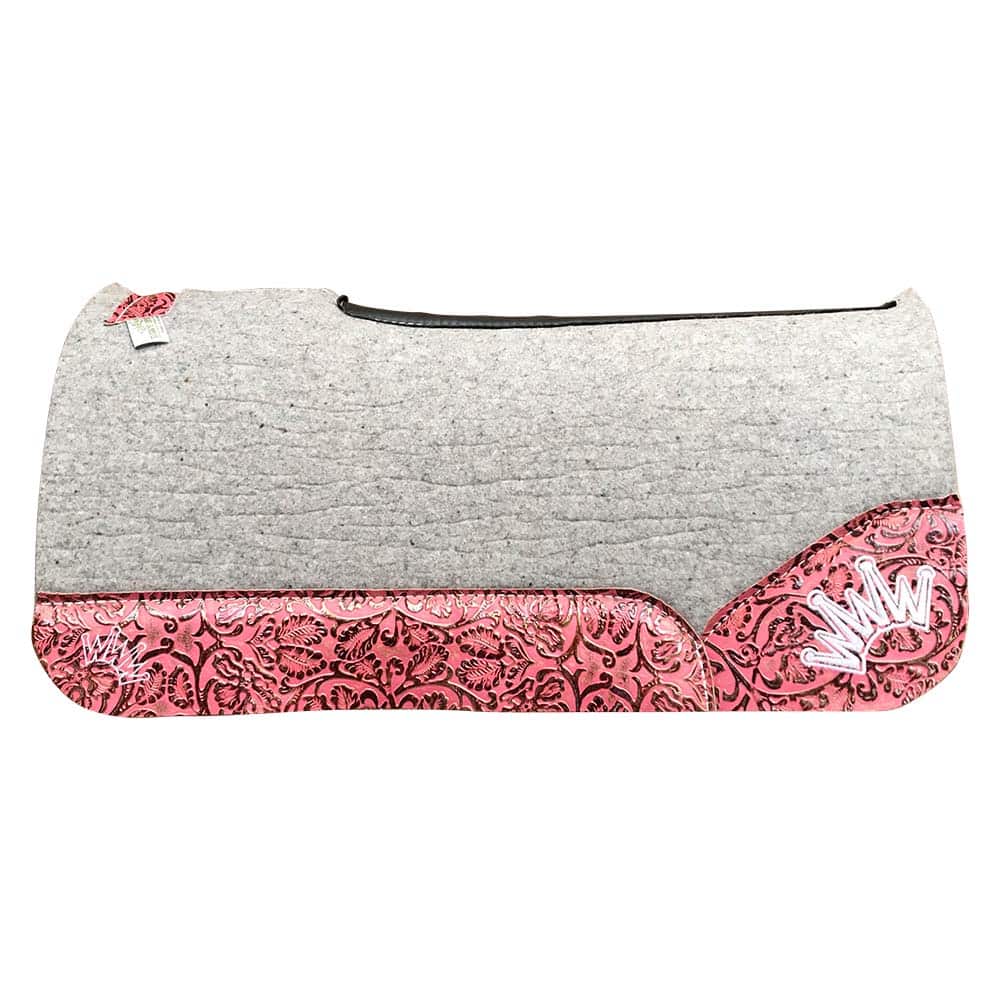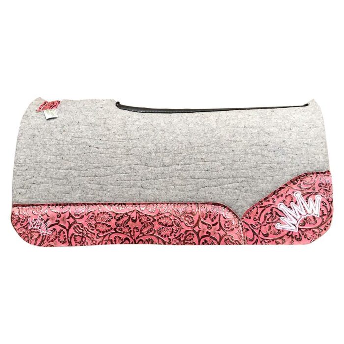 Gray Kush Saddle Pad with Pink Champagne Floral – Crown in White Embroidery