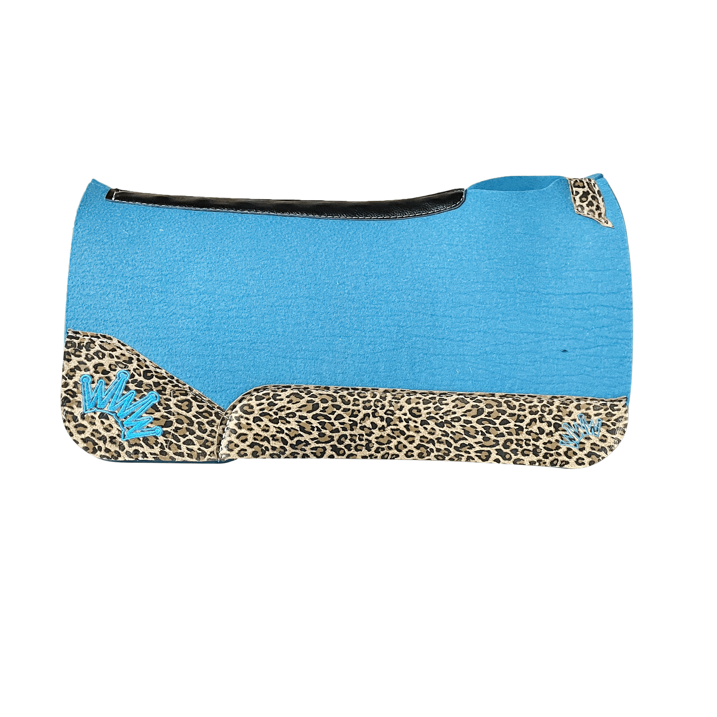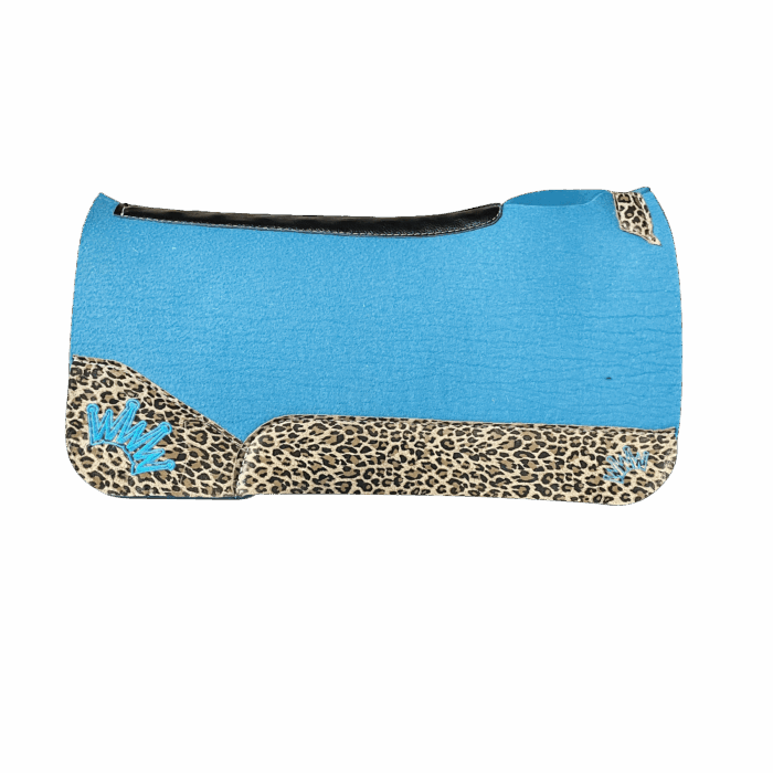 Turquoise Kush Saddle Pad with Leopard Leather – Crown in Turquoise Embroidery